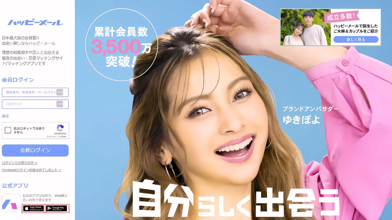 とにかく会員数が多く、国内最大級の出会い系サービスとして長年親しまれているのがハッピーメールです。 累計登録者数は3,500万人を超えていて、地方でも相手が見つかりやすいのが大きなメリット。